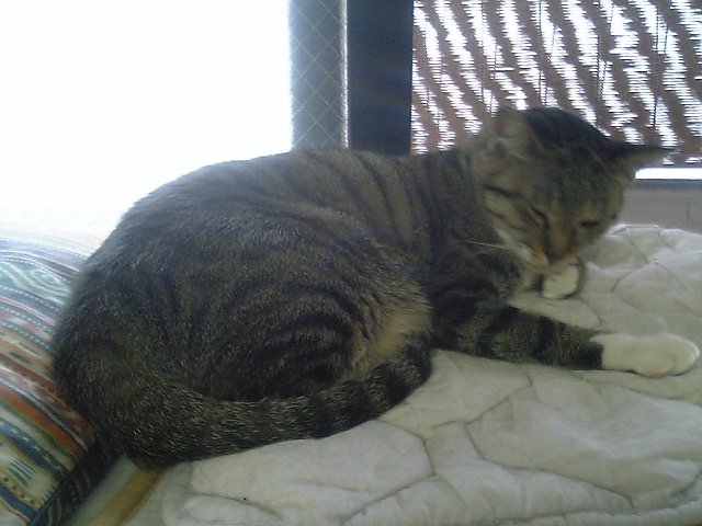構って欲しいような仕草を時々見せたり、側にやってきて「んにゃあ」と一声啼きますが、いつものようにしつこく迫ってはきません(笑)。