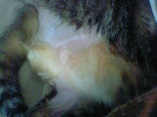 丁度、放射線を当てていた前肢腋から後肢腋にかけて