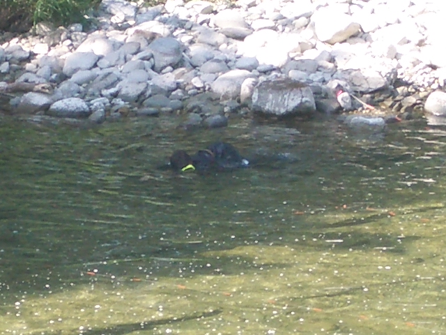 川に潜り、