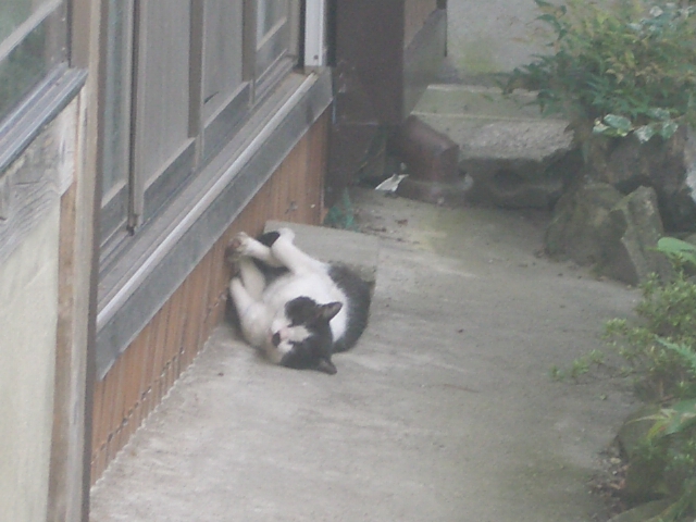 民家の軒先でまったりしていた野良猫(笑)