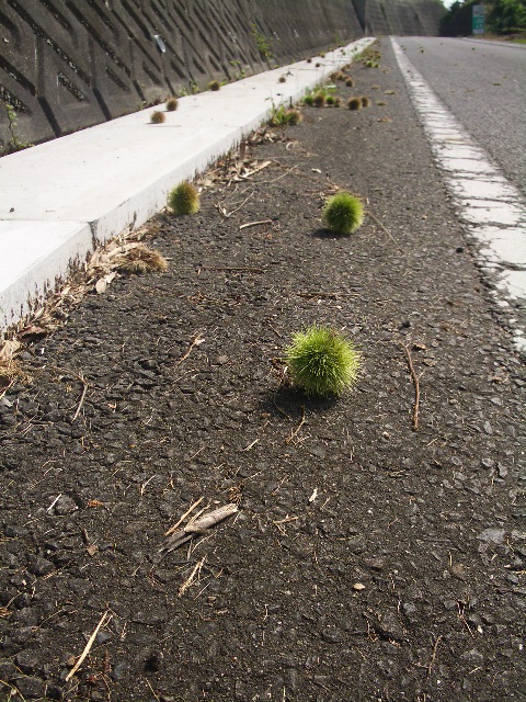 未だ青いイガ栗が落ちています。