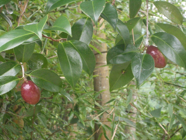 山に入ると赤い実が成っている木がありました。