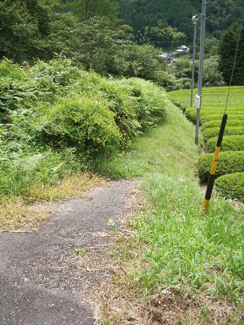 この茶畑の横に道があって下りられるよ