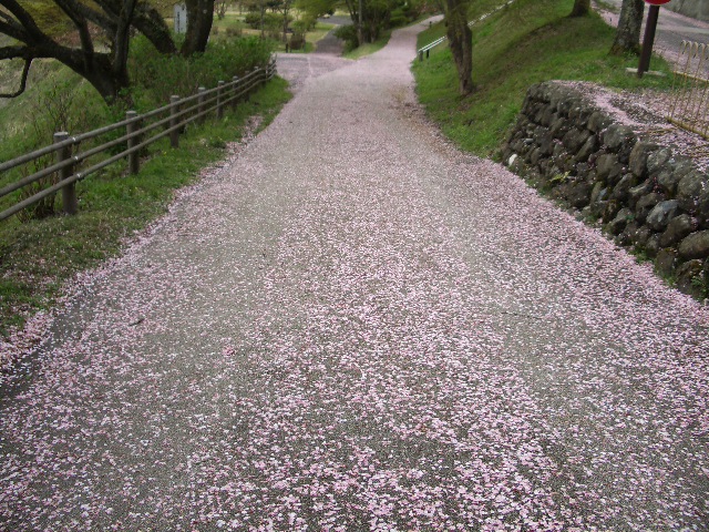 遊歩道は舞い散った花びらが敷き詰められていて