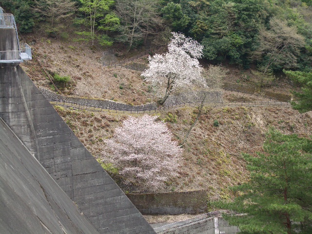 ダムの方から観ると、やはり枝垂れ桜が綺麗♪