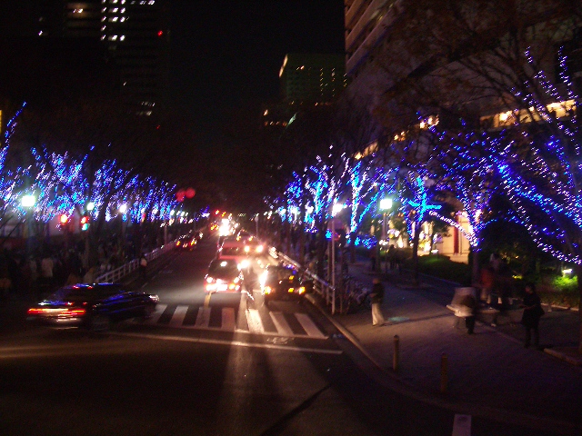 街路樹が電飾されていて