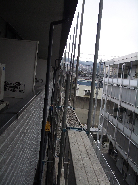 洗濯が終わり、ベランダに出て干していると、足場が組始められていました。