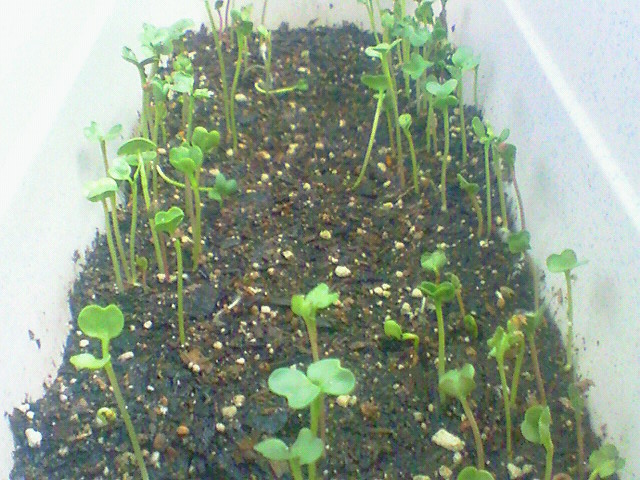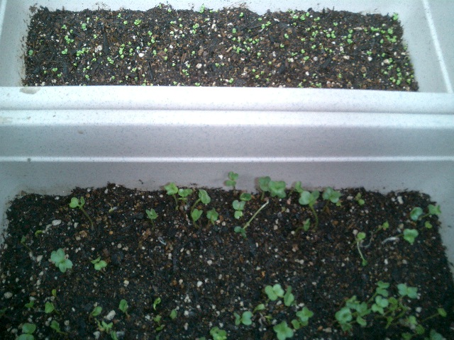 芽が出たのはラディッシュの方。