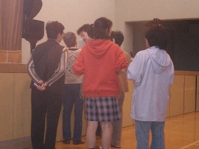 前のクラスの参加者達が、先生に写真&サインを求めて列を作っていました。