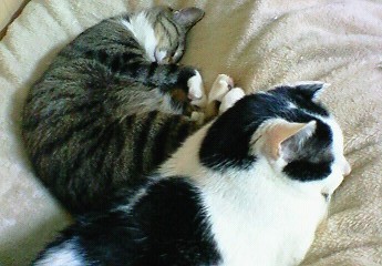 朝ご飯を済ませたネコ達はすっかり「お昼寝」の態勢。